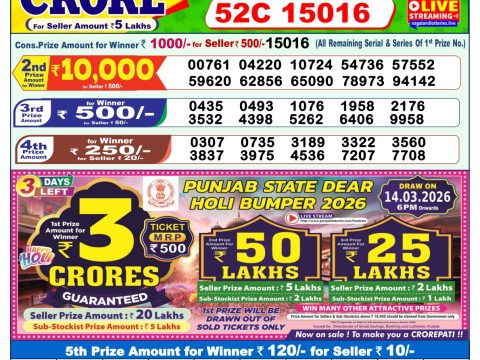 Punjab State Dear 50 Thursday Weekly Lottery Result, 5pm, 12.03.2026