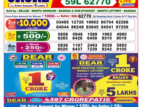 Dear Crown Friday Weekly Lottery Result, 6pm, 13.03.2026
