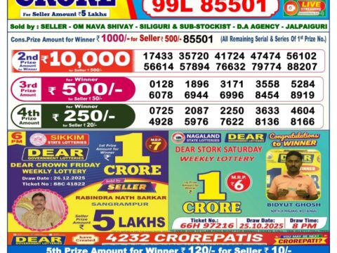 Dear Crown Friday Weekly Lottery Result, 6pm, 26.12.2025