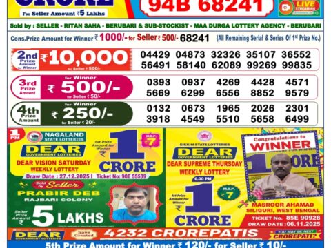 Sikkim Dear X-Mas Bumper 2025 Result, 6pm, 27.12.25