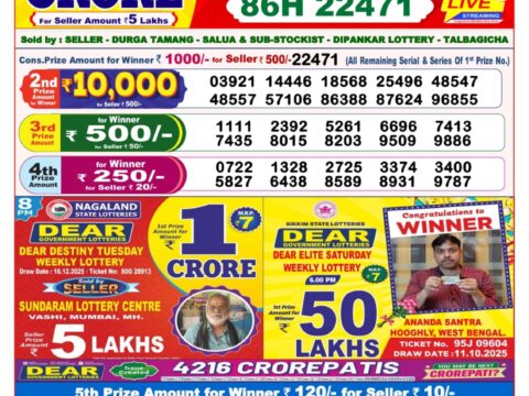 Dear Crown Friday Weekly Lottery Result, 6pm, 19.12.2025