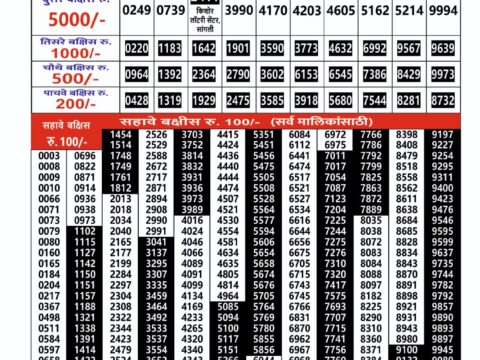 Maharashtra Gajlaxmi Lottery Result,4.45pm,20.01.2026