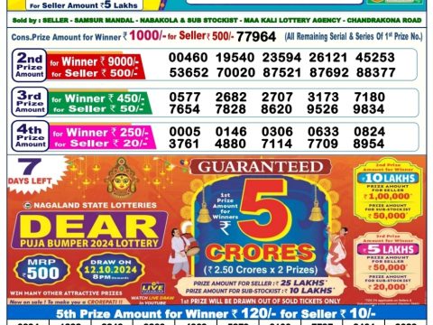 Rajshree guru weekly lottery result, 1pm, 24.4.2025