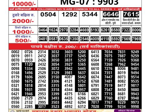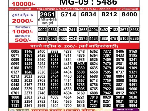 Maharashtra Gajlaxmi Weekly Lottery Result, 2.55pm, 26.09.2025