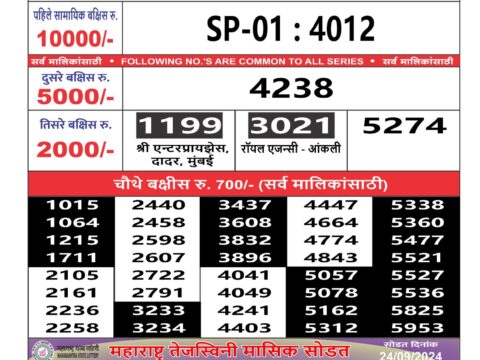 Maharashtra Gajlaxmi weekly lottery result, 11.45pm, 11.4.2025