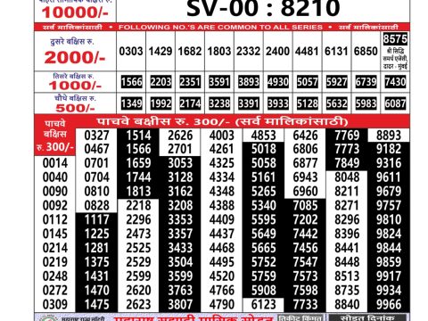Maharashtra Sahyadri Weekly Lottery Result, 4.30pm, 06.11.2025