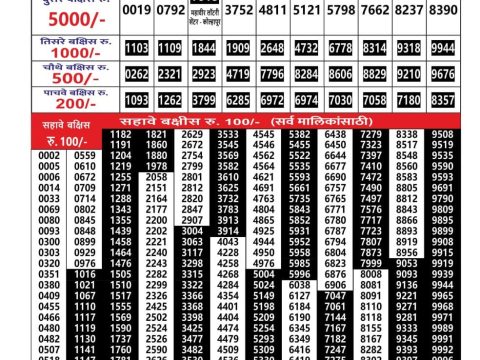 Maharashtra Ganesh Laxmi Lottery Result,5pm,06.11.2025