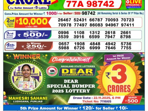 Maharashtra Sahyadri Weekly Lottery Result, 4.30pm, 08.01.2026