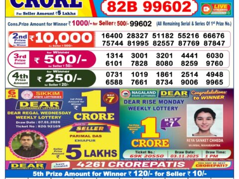Dear Crown Friday Weekly Lottery Result, 6pm, 09.01.2026