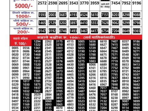 Maharashtra Ganesh Laxmi Lottery Result,5pm,08.01.2026