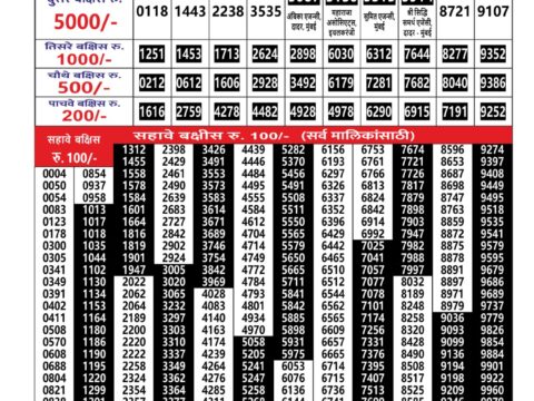 Maharashtra Gajlaxmi Weekly Lottery Result, 4.45pm, 04.01.2026
