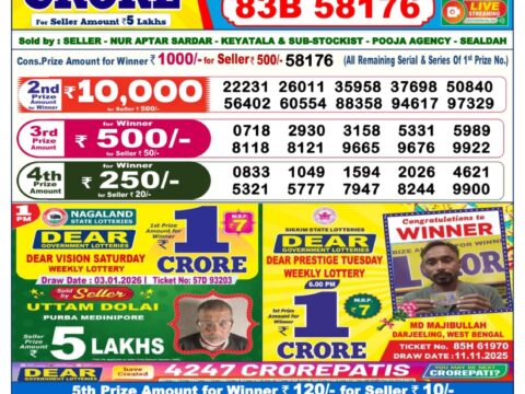 Dear Vision Saturday Weekly Lottery Result, 1pm, 03.01.2026
