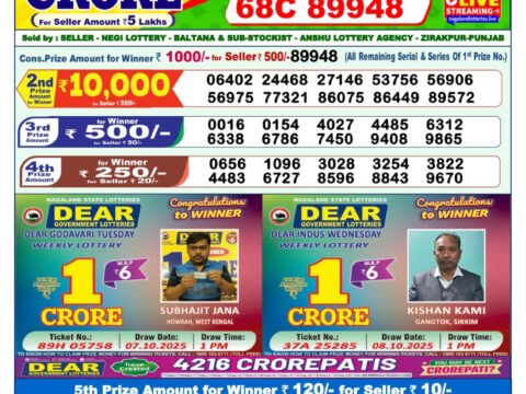 Dear Prestige Tuesday Weekly Lottery Result, 6pm, 16.12.2025