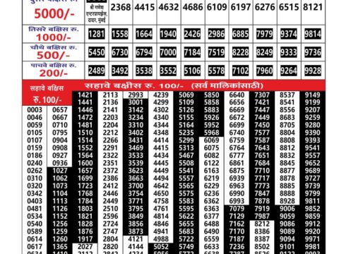 Maharashtra Gajlaxmi Lottery Result,4.45pm,15.12.2025