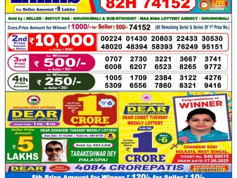 Punjab State Dear 50 Sunday Weekly Lottery Result, 6pm, 19.10.2025