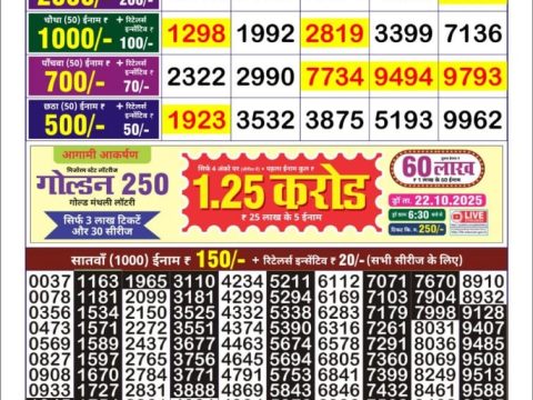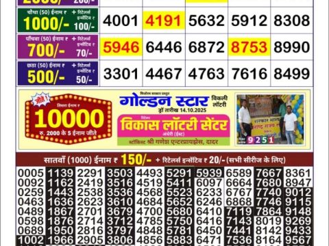 Golden Star Ravi Weekly Lottery Result, 9pm, 19.10.2025