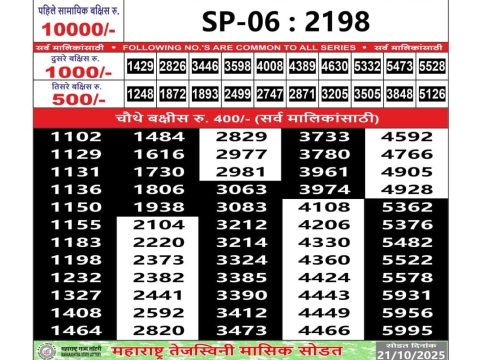Maharashtra Laxmi Weekly Lottery Result 18.10.2025