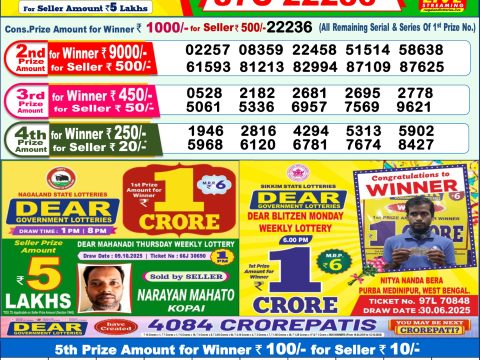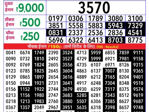 Rajshree Sunflower Weekly Lottery Result, 4pm, 19.10.2025