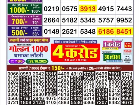 Maharashtra Gajlaxmi Weekly Lottery Result, 4.45pm, 19.10.2025