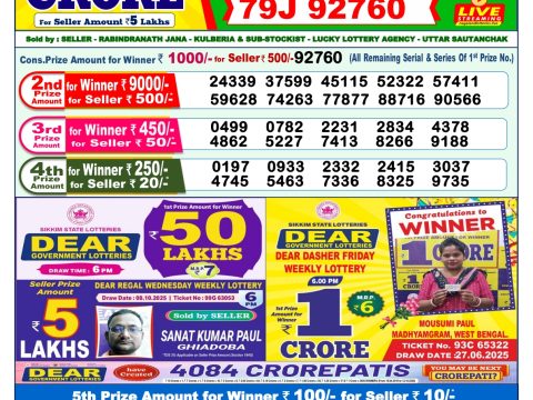 Dear Crown Friday Weekly Lottery Result, 6pm, 17.10.2025