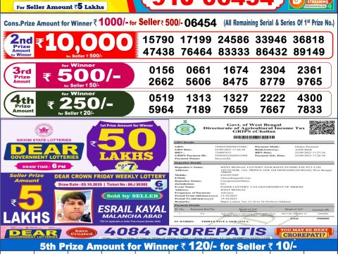 Maharashtra Gajlaxmi Weekly Lottery Result, 4.45pm, 12.10.2025