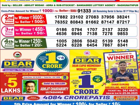 Dear Dwarka Monday Weekly Lottery Result, 1pm, 13.10.2025