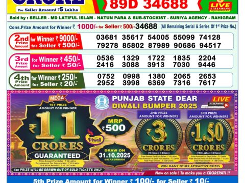 Dear Puja Bumper Lottery Result 8pm 11.10.2025