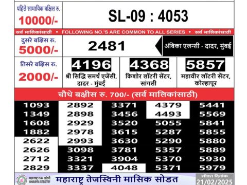 Maharashtra Gajlaxmi Weekly Lottery Result, 2.55pm, 29.08.2025