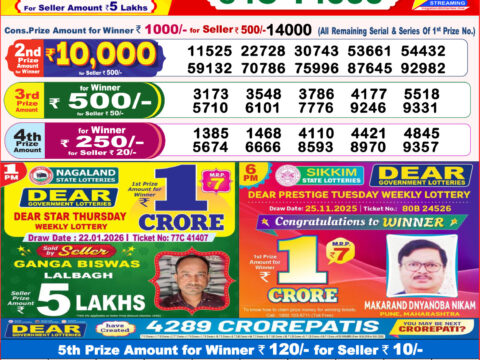 Dear Crown Friday Weekly Lottery Result, 6pm, 23.01.2026