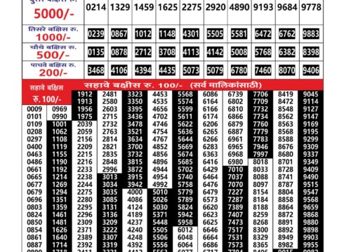 Maharashtra Ganesh Laxmi Lottery Result,5pm,22.01.2026