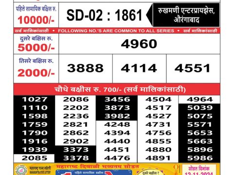 Maharashtra Gajlaxmi weekly lottery result, 2.55pm, 23.05.2025
